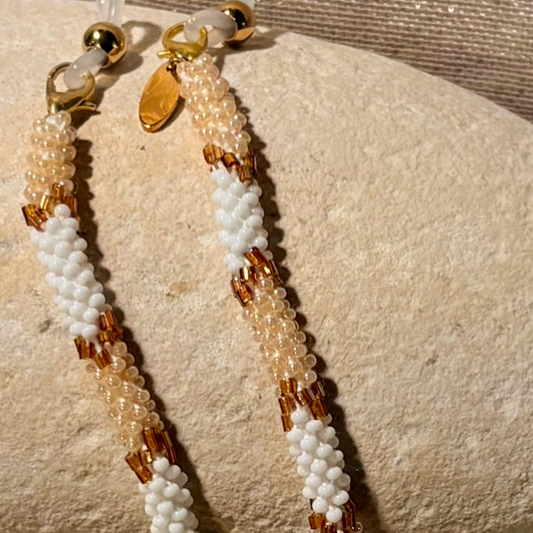 Cordon à lunettes – tissage artisanal du Népal Blanc et or