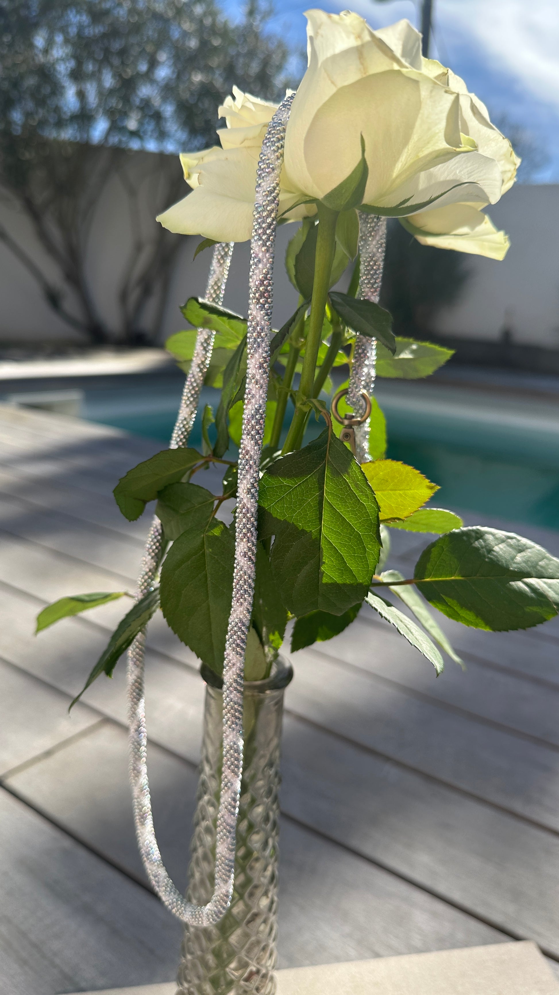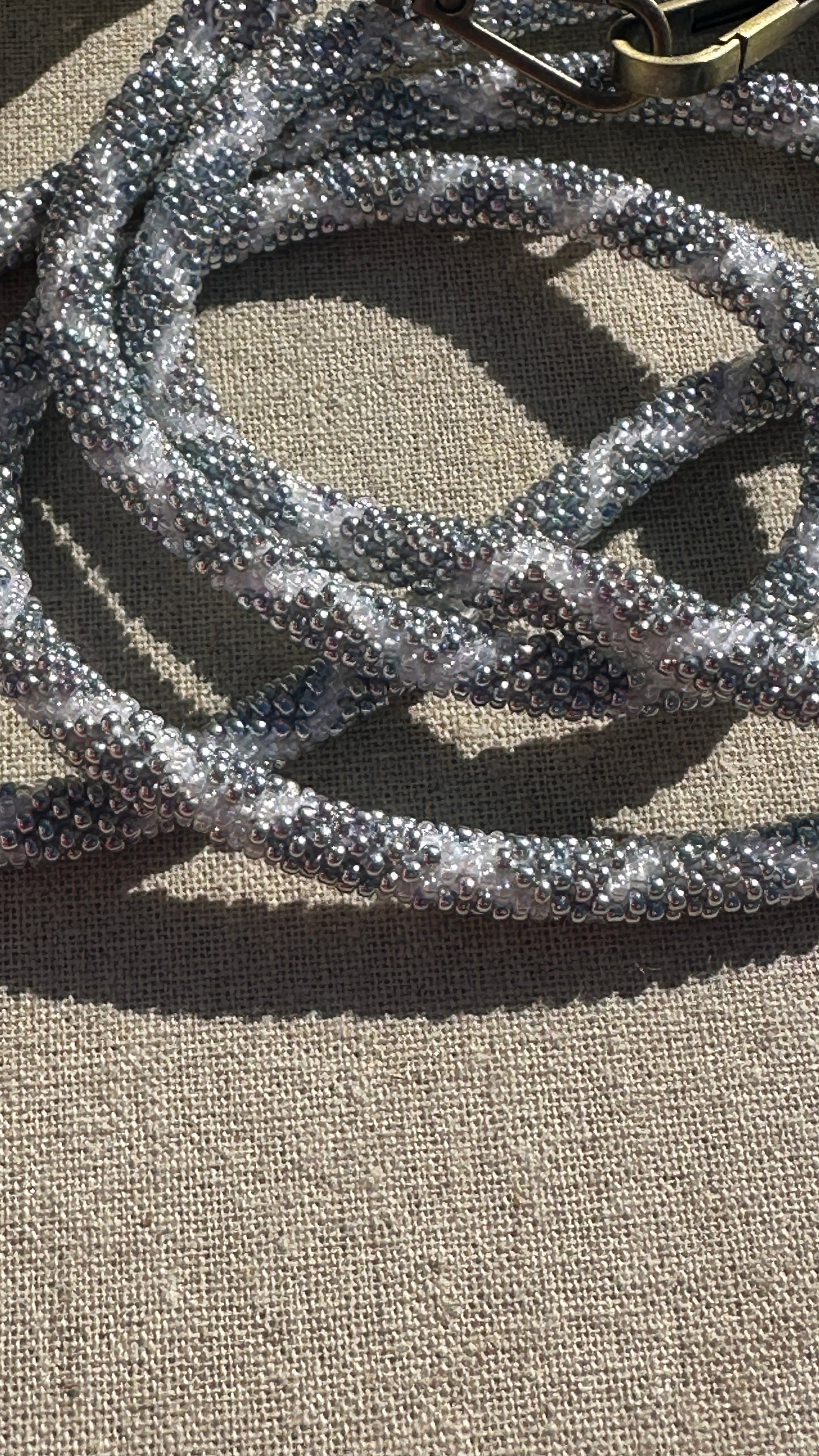 Cordon de Téléphone en Perles de verre – unique, tendance et responsable #A26 argenté et blanc