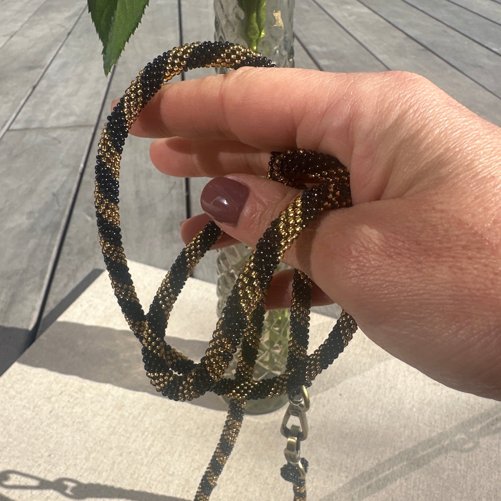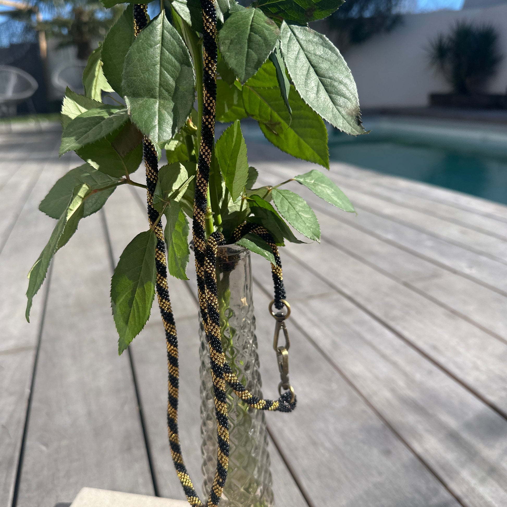 Cordon de Téléphone en Perles de verre – unique, tendance et responsable #A36 doré et noir