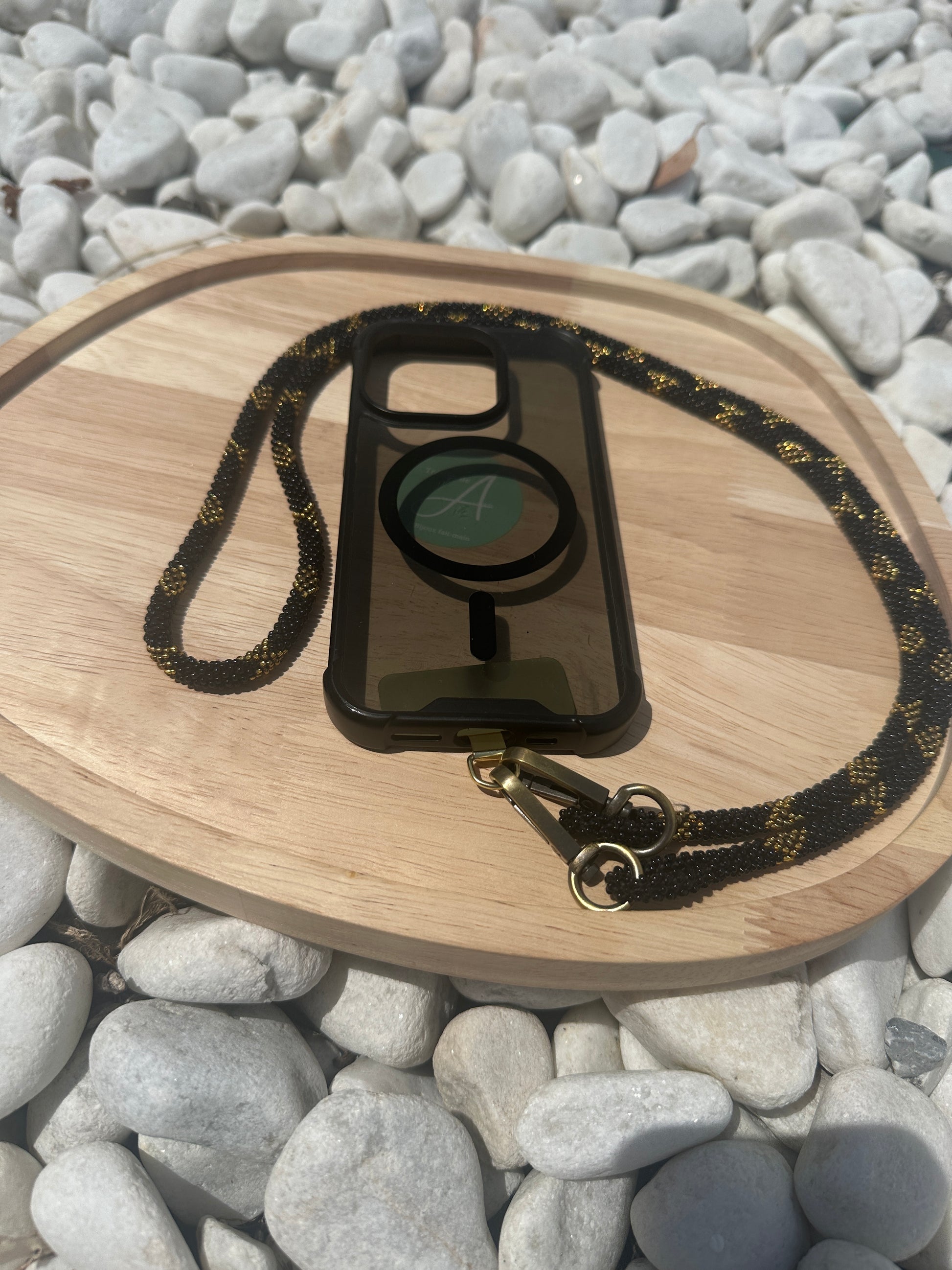 Cordon de Téléphone en Perles de verre – unique, tendance et responsable #A37 doré et noir