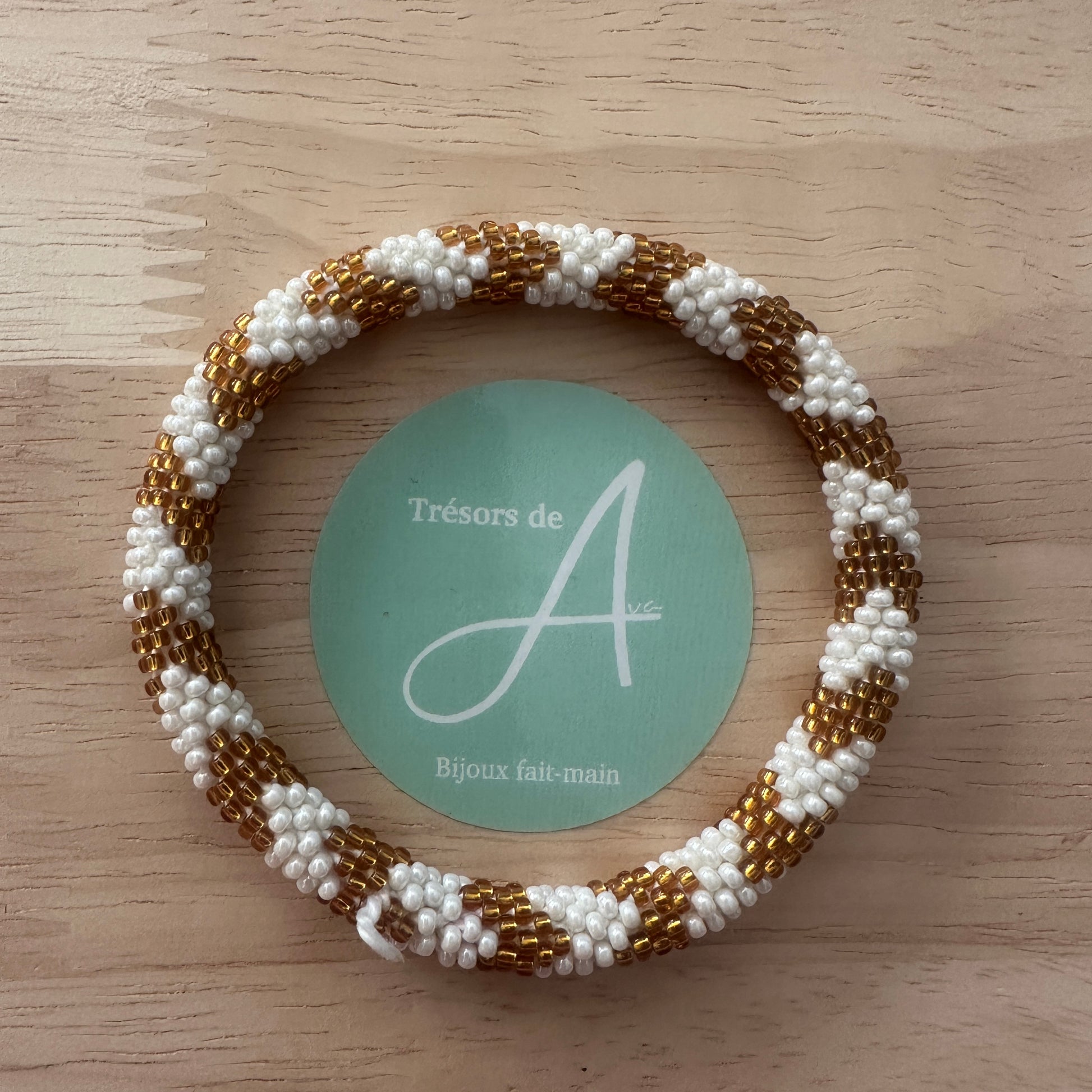Chaque bracelet est conçu à partir de perles de verre enfilées sur un fil de coton résistant, selon une technique de crochetage en tube, qui donne au bijou toute sa souplesse et son confort. Les motifs et dessins sont parfois inspirés de traditions locales, parfois totalement libres : c’est ce qui rend chaque modèle unique.