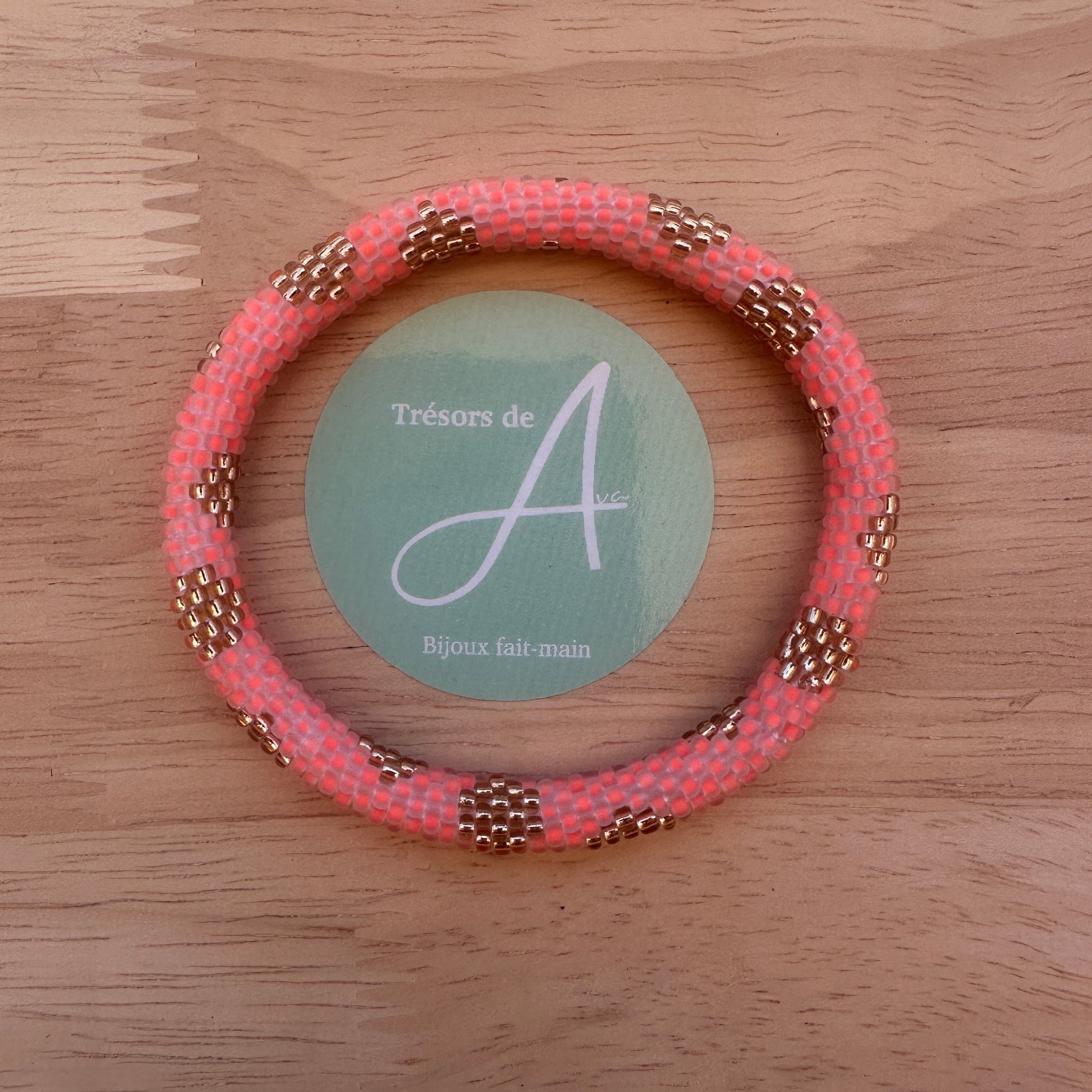 Chaque bracelet est conçu à partir de perles de verre enfilées sur un fil de coton résistant, selon une technique de crochetage en tube, qui donne au bijou toute sa souplesse et son confort. Les motifs et dessins sont parfois inspirés de traditions locales, parfois totalement libres : c’est ce qui rend chaque modèle unique.