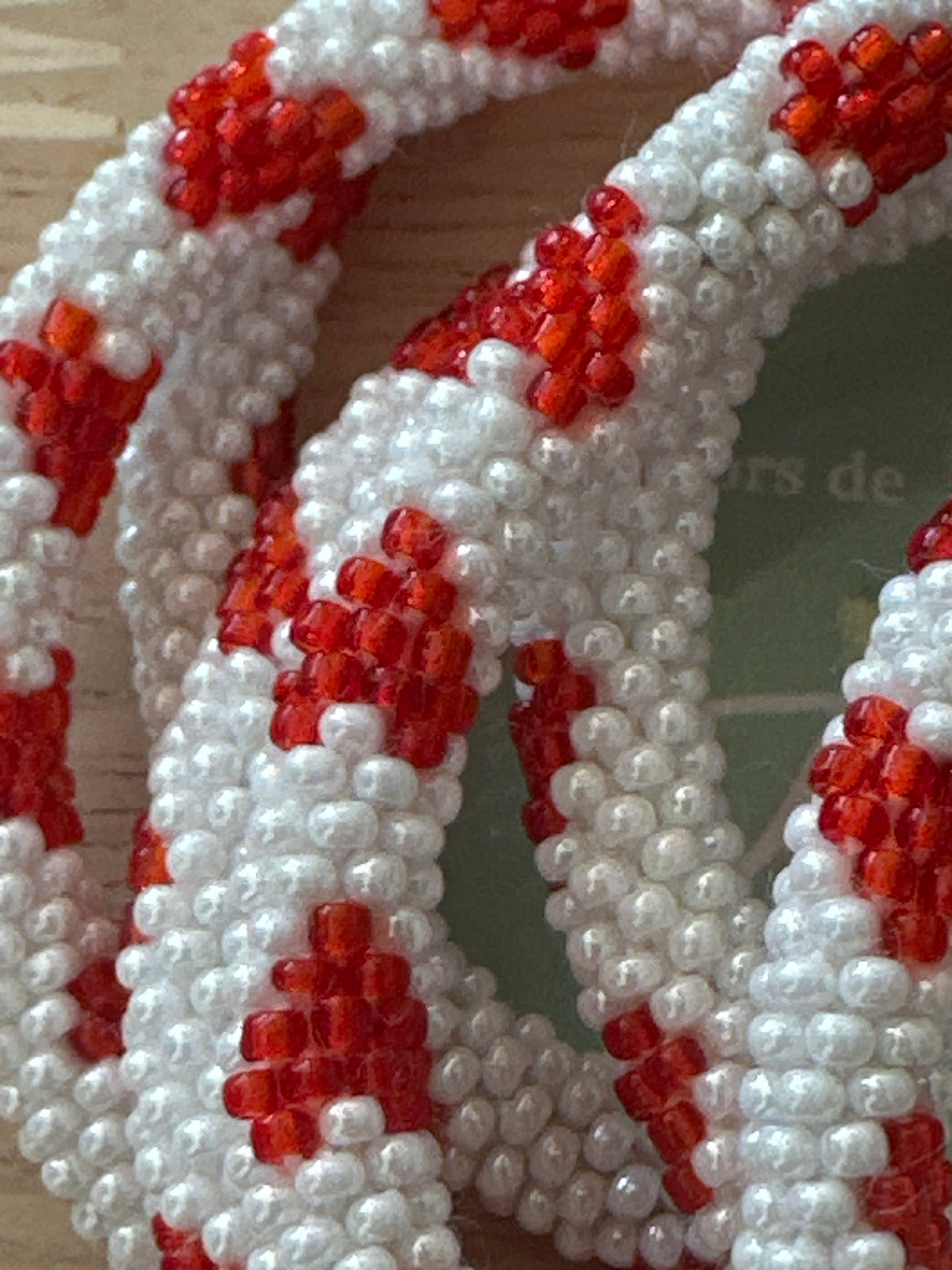 Chaque bracelet est conçu à partir de perles de verre enfilées sur un fil de coton résistant, selon une technique de crochetage en tube, qui donne au bijou toute sa souplesse et son confort. Les motifs et dessins sont parfois inspirés de traditions locales, parfois totalement libres : c’est ce qui rend chaque modèle unique.