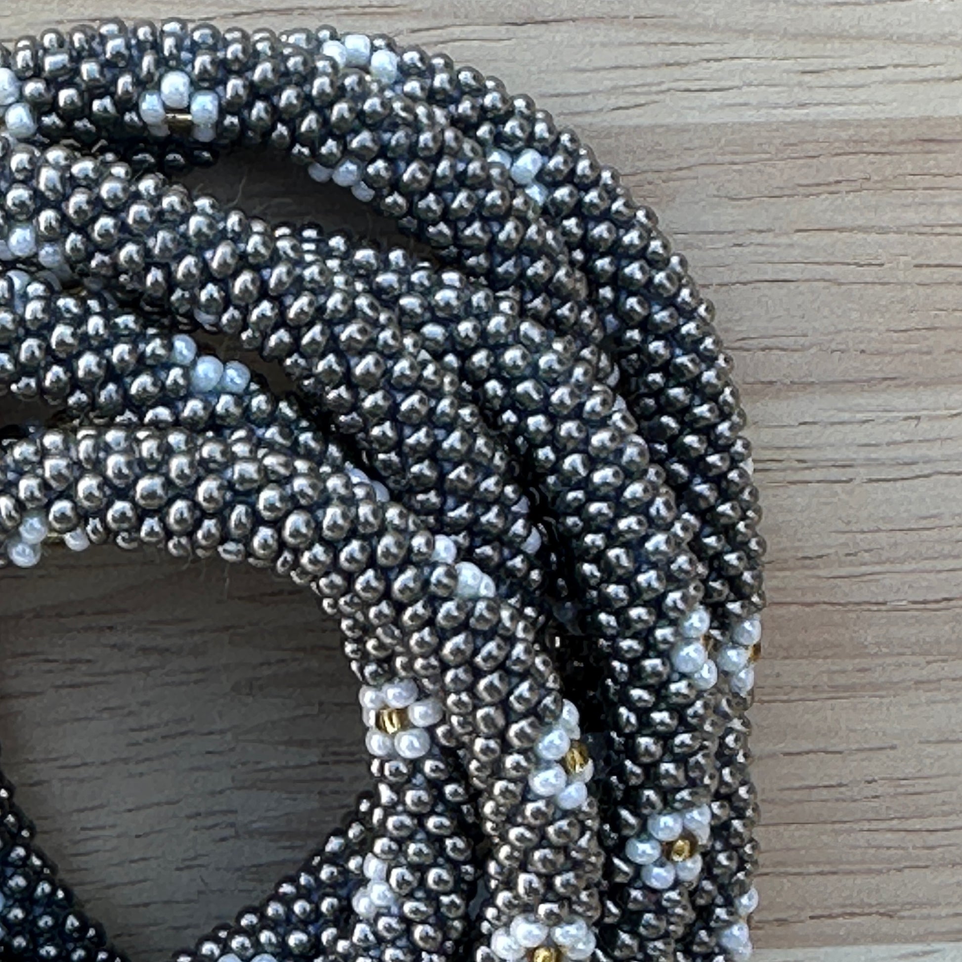 Chaque bracelet est conçu à partir de perles de verre enfilées sur un fil de coton résistant, selon une technique de crochetage en tube, qui donne au bijou toute sa souplesse et son confort. Les motifs et dessins sont parfois inspirés de traditions locales, parfois totalement libres : c’est ce qui rend chaque modèle unique.