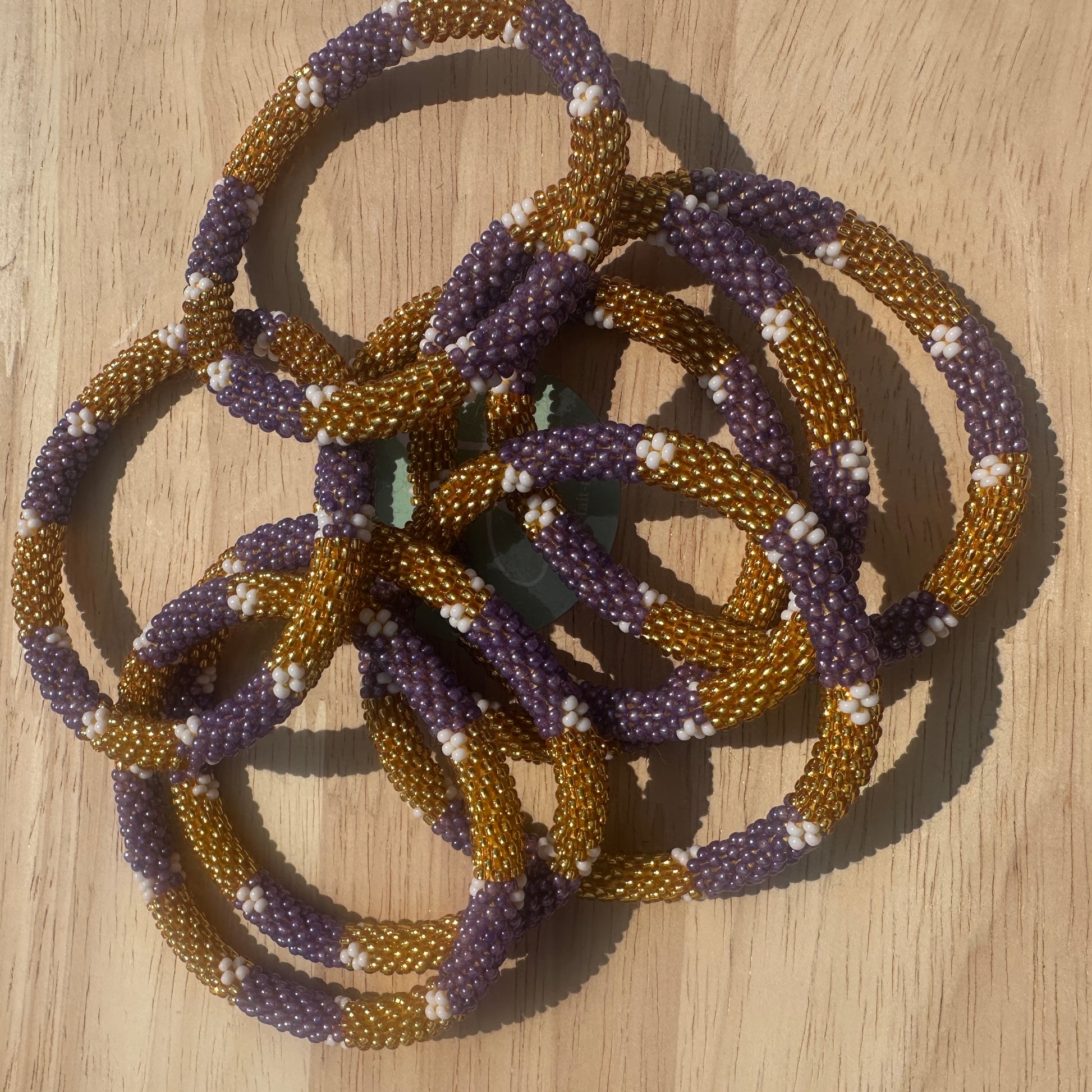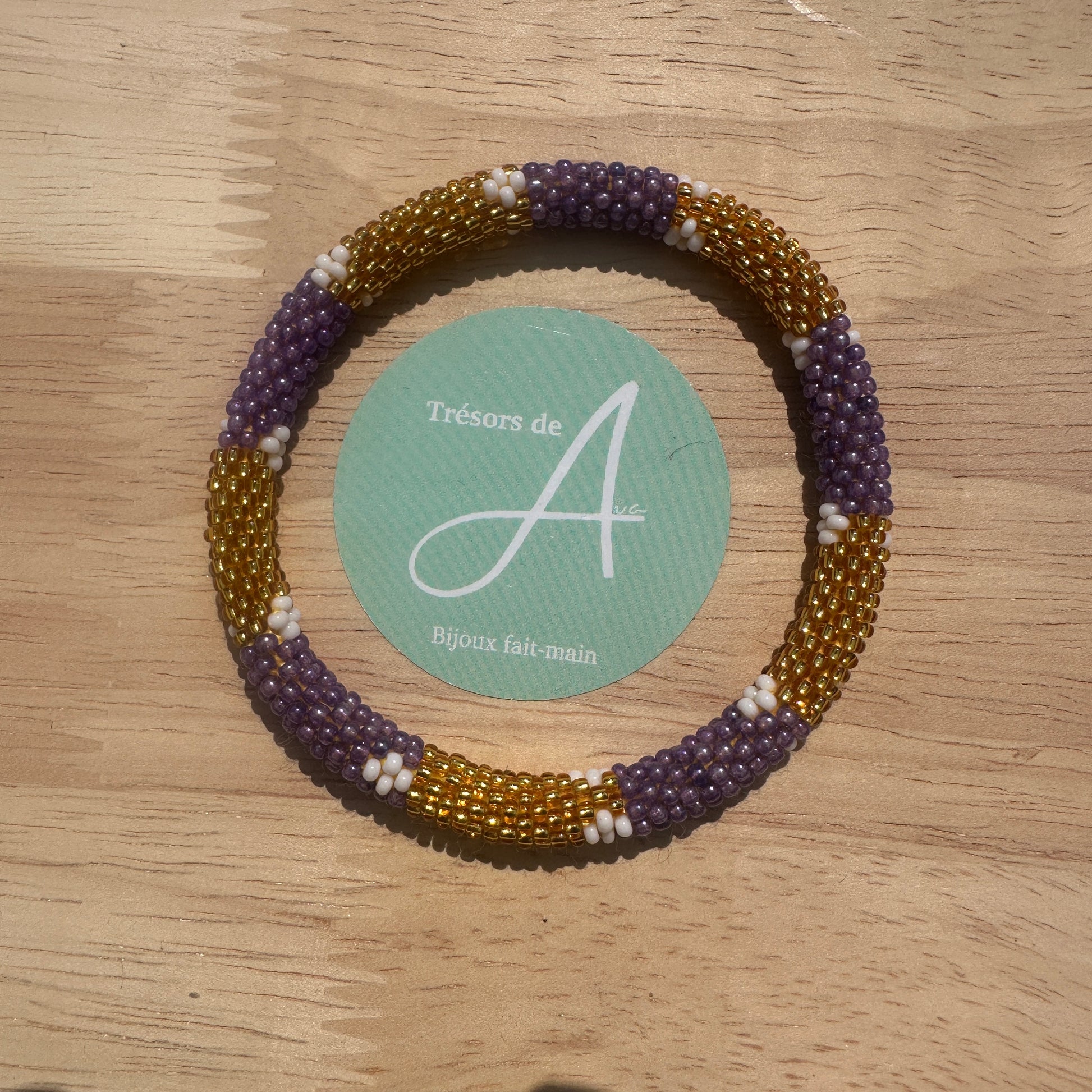 Bracelet Népalais – violet doré et blanc Héritage, savoir-faire et liberté