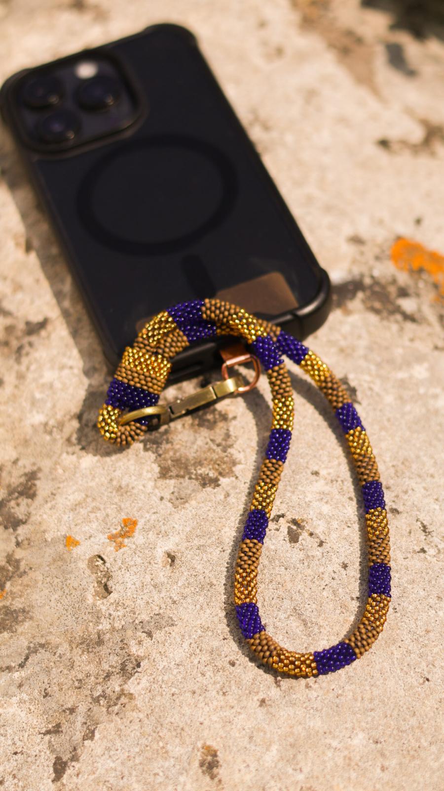 Dragonne de Téléphone Portable Népalais en Perles de Verre - Exclusivité Trésors de Ava