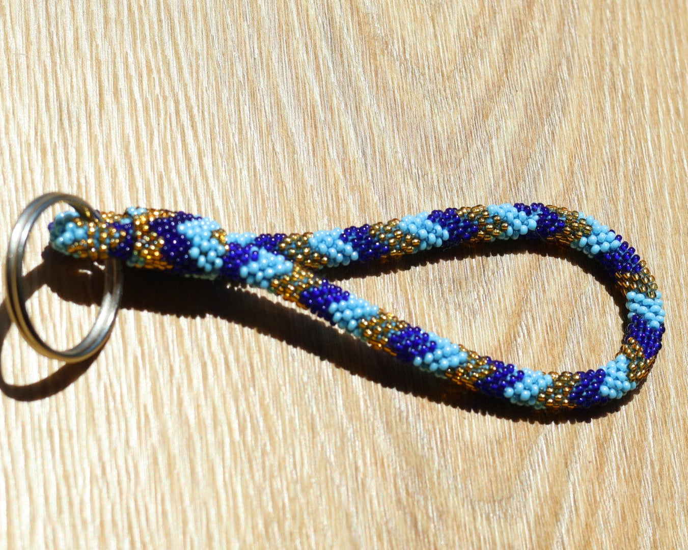 Chaque porte-clés nécessite en moyenne 3h30 de travail manuel. Les perles de verre sont tissées à la main avec patience et précision, puis montées sur un anneau brisé robuste pour une utilisation quotidienne.