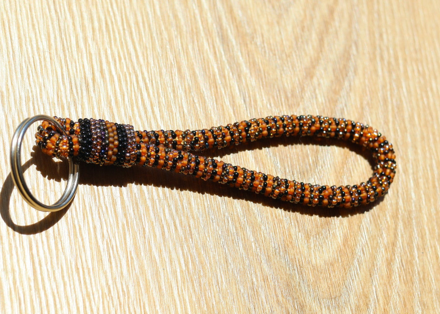 Chaque porte-clés nécessite en moyenne 3h30 de travail manuel. Les perles de verre sont tissées à la main avec patience et précision, puis montées sur un anneau brisé robuste pour une utilisation quotidienne.